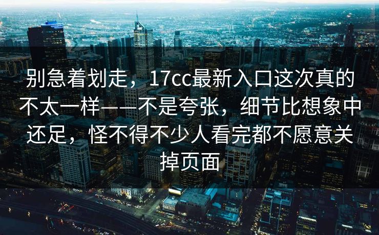 别急着划走,17cc最新入口这次真的不太一样——不是夸张,细节比想象中还足,怪不得不少人看完都不愿意关掉页面